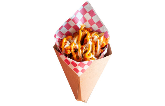 Nuestra deliciosa pizza con boneless búfalo, pídela con hasta dos aderezos, ranch, búfalo o chipotle*