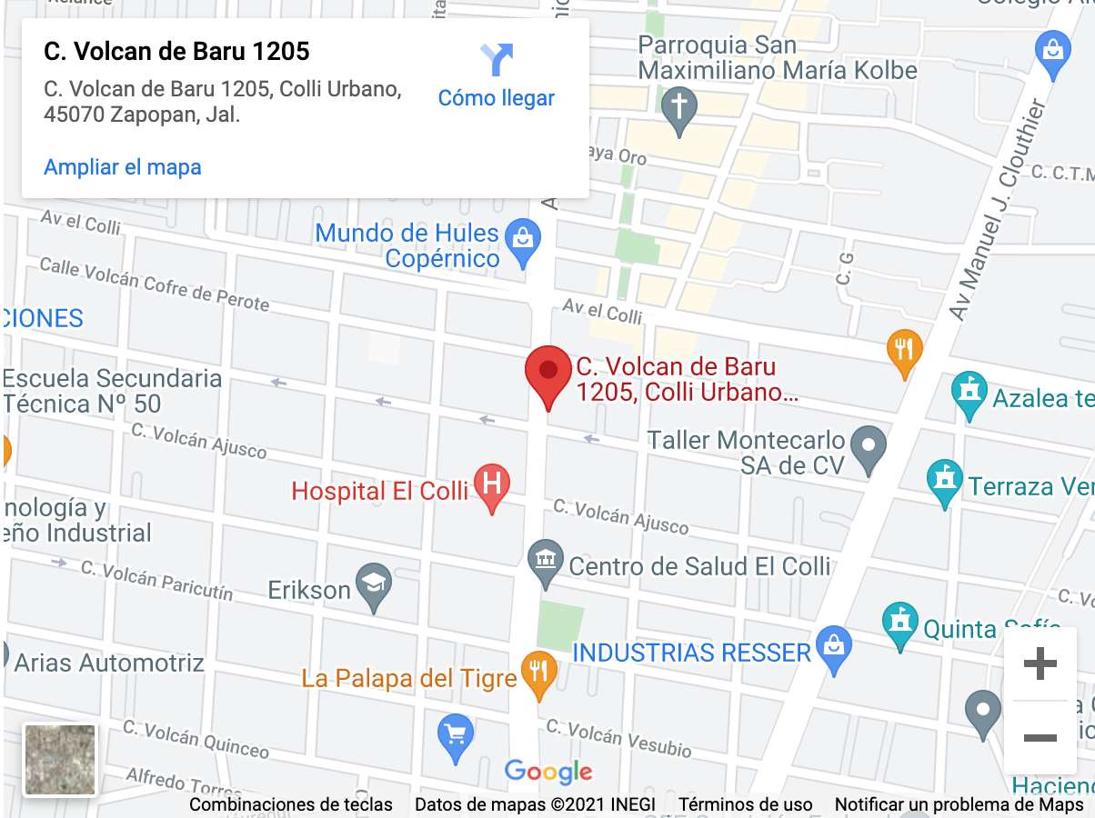 C. Volcan de Baru 1205 Colli Urbano, Zapopan, Jalisco.