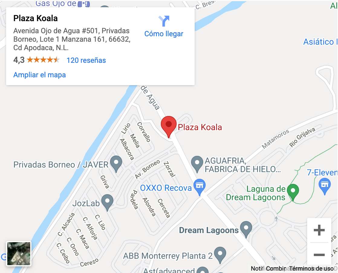 Plaza Koala Apodaca local 16 Av. Ojo de Agua 501 Privadas Borneo CP 66632 Apodaca NL